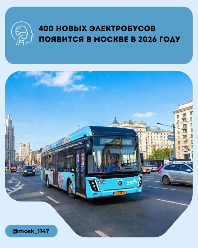 🗣В 2026 году парк Мосгортранса пополнят более 400 новых электробусов Благодаря этому общее количество машин превысит 3,3 тысячи, а их доля достигнет 45%. Москва продолжит удерживать лидерство среди