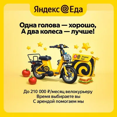 Требуются велокурьеры = партнеры сервиса «Яндекс Еда» 🤝 Доход до 210 000 ₽/месяц. Помощь с арендой велика от компании. Анкета: clck.ru/3Sm42W 😎 Гарантии — Деньги на карту ежедневно или еженедель