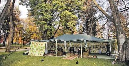 Геополитическая обстановка напомнила о появлении в Москве удивительного объекта жилой движимости — о шатре, который привез с собой в рамках визита в нашу страну в 2008 году Муаммар Каддафи. Этот бедуи