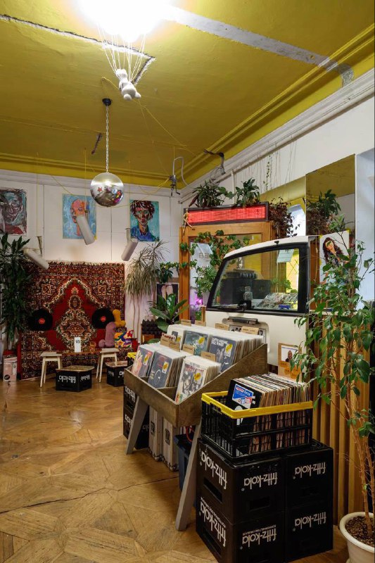 Закрывается B-Side — лавка виниловых пластинок в Особняке на Трехсвяте, которая похожа на микро музей неформального искусства. В интерьере: - табло из метро, где вместо названий станций — строки из с
