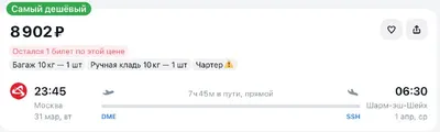 🇾🇪 Летим в Шарм‑эш-Шейх (Египет) 31 марта за 8 902₽ — билет тут Подписывайтесь на наш канал и Вы не упустите такие билеты. ❗Цены действительны на момент публикации и могут меняться 🔣Подпишись,