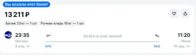 🇲🇻 Летим из Москвы на Мальдивы (Мале) сегодня вечером за 13 211₽ — билет тут Для граждан России виза на Мальдивы не требуется для туристических поездок сроком до 90 дней. Подписывайтесь на наш кан