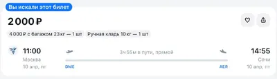 ✈ В Сочи 10 апреля за 2000₽ — билет тут Подписывайтесь на наш канал и Вы не упустите такие билеты. ❗Цены действительны на момент публикации и могут меняться 🔣Подпишись, чтобы не упустить самые вы