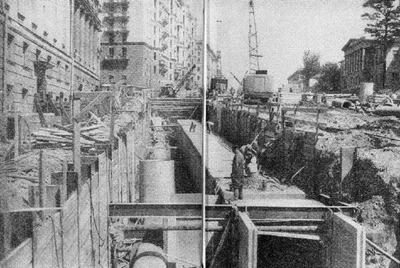 Строительство коллектора на улице Чкалова. 1962-1963 / 2022 гг. ◽️ Фотография из первого номера «Городского хозяйства Москвы». Авторское название: «Строительство на улице Чкалова коллектора для подзе