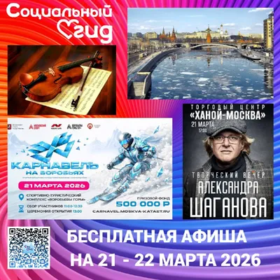 ⭕️ Ваш Социальный гид приглашает посетить в выходные 21 - 22 марта 2026 Самые интересные бесплатные события в Москве 📎 Творческий вечер знаменитого поэта-песенника Александра Шаганова 📎 Спортивны
