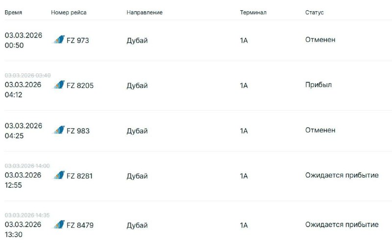 ✈️ В Казань прилетел первый самолет из Дубая после закрытия неба Судя по онлайн-табло аэропорта, в 4:09 приземлился рейс Flydubai — это первый борт после введённых ограничений в ОАЭ. Ранее небо закр