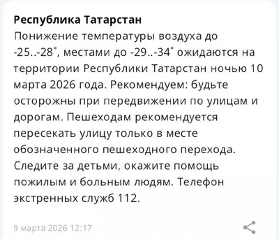 🔻Осторожно, гололед: МЧС предупреждает о сложной погоде в Татарстане 2 марта МЧС предупреждает жителей Татарстана о неблагоприятных погодных условиях завтра, 2 марта. Ночью и днем в республике, вклю