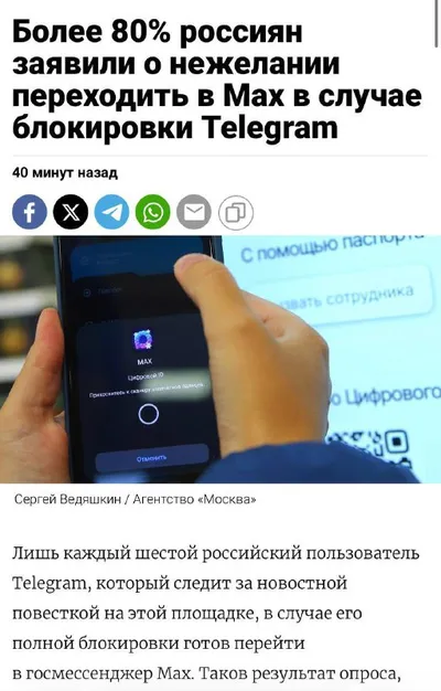 Вечерние новости.. 😌 80% Россиян отказываются переходить в МАХ из Telegram ➖➖➖➖➖➖➖➖➖➖➖➖ ⭐️ Купить звезды 🧬 ɴꜰᴛ’ɪꜱʜᴋᴀ