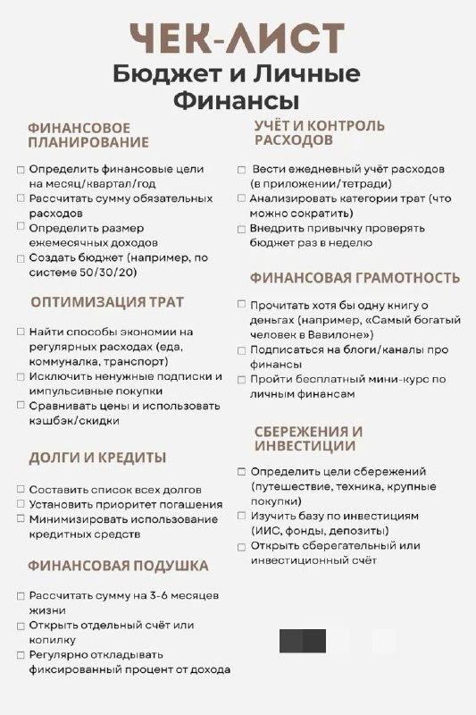 Чек-лист: бюджет и личные финансы Если вы хотите наконец-то разобраться с деньгами — начните с основ. Этот чек-лист поможет навести порядок в финансах, даже если вы раньше этим не занималась. Он поша