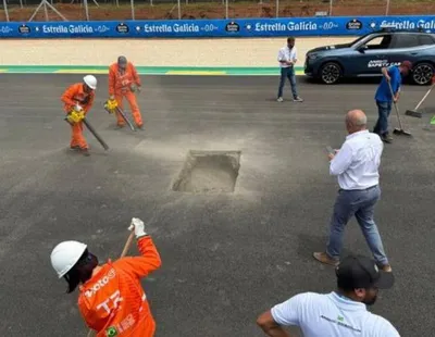 Что происходит в Бразилии? Трек высыхает, вода из въезда ушла, просела почва под трибуной - идет нормальный цивилизованный процесс