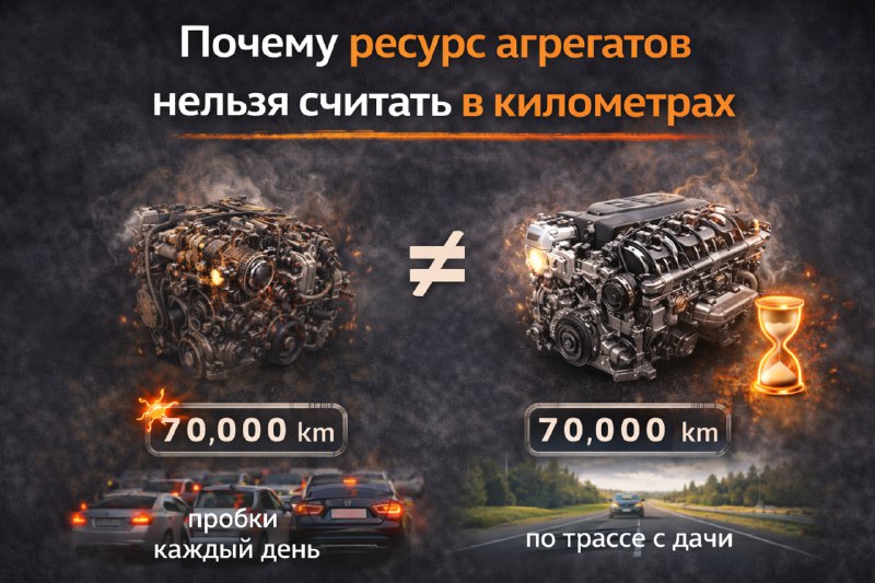 Почему ресурс агрегатов нельзя считать в километрах❓ Один водитель убивает мотор за 100 тыс. Другой ездит 300 тыс. и не знает проблем. ✏️Потому что ресурс — это: 🟢тепловые циклы 🟢 нагрузки 🟢 стил
