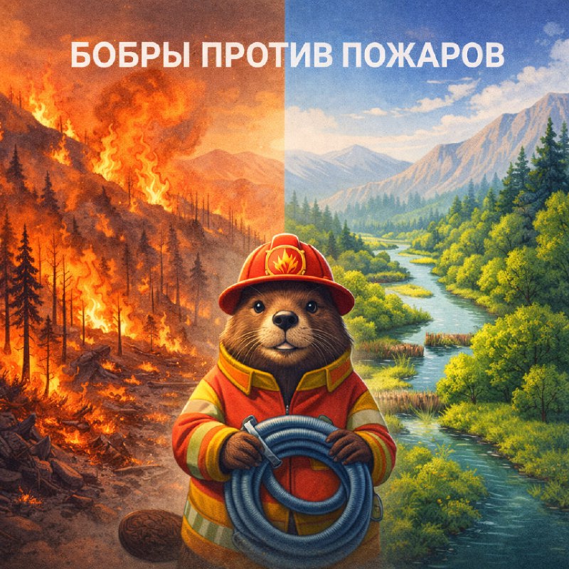 Как бобры помогают переживать пожары🦫 После крупных пожаров на картах иногда видно странное: вокруг выжжено, а вдоль ручьёв остаются более «живые» полосы. Одна из причин – вода. А главный «водный ме
