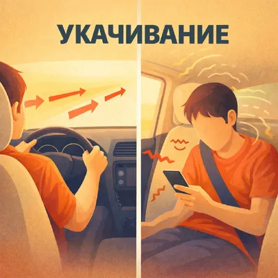Почему в машине укачивает даже взрослых 🤢 Укачивание — это очень обидный сбой согласования. Тело едет, внутреннее ухо чувствует повороты, ускорения и торможения, а глазам часто не хватает понятной к