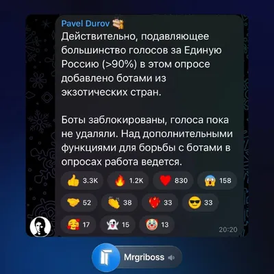 😻 ДУРОВ КОММЕНТИРУЕТ ПОСТЫ! Впервые за долгое время Павел Дуров оставил комментарий под постом! 🔥 Он заявил, что в одном из политических опросов голоса были накручены. Также он отметил, что допо