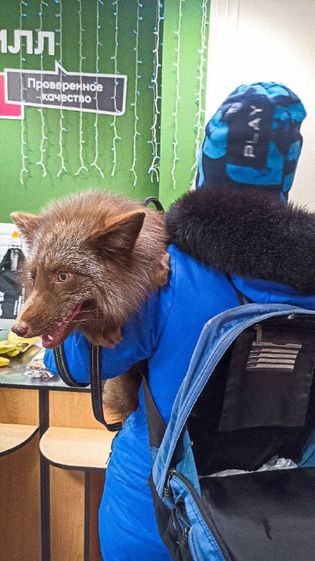😳 Обычный день в Чертаново Девушка пришла в магазин за продуктами — с живой бурой лисой на плече 😊 📲 Москва уже в MAX