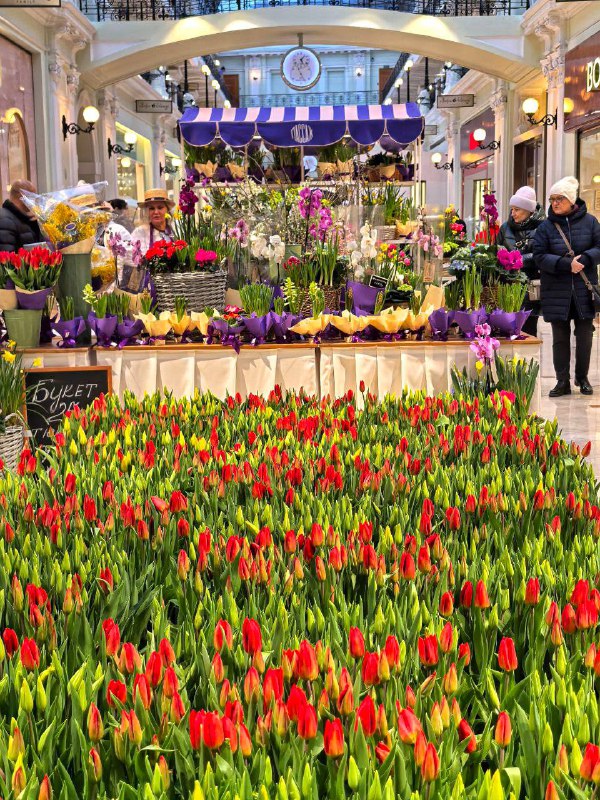 Ежегодная цветочная ярмарка открылась сегодня в «Петровском пассаже» Она продлится до 8 марта. Фото Ишевских Ирина. Подписаться | Куда сходить в Москве