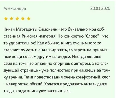 Спасибо Екатерине за отзыв на мою книгу 'В начале было Слово — в конце будет Цифра'. И всем, кто пишет про мой роман и оставляет свое мнение, — тоже большое спасибо! Для нас с Лаурой ваши отзывы им