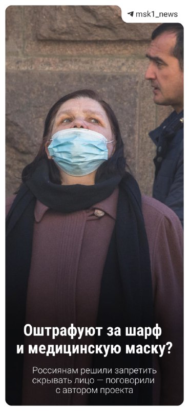 😷 Депутаты Госдумы от КПРФ внесли законопроект, который запрещает скрывать лицо в общественных местах. За ношение никабов, балаклав и шарфов по самые глаза россиян хотят штрафовать на суммы до 30 т