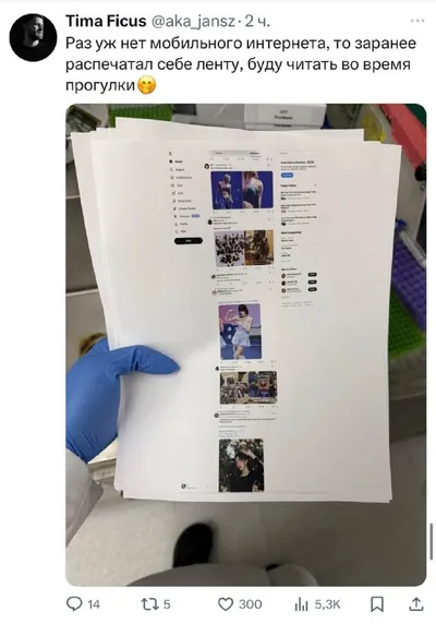 😅 Москвич распечатал ленту новостей, чтобы читать её по дороге Современные проблемы требуют современных решений