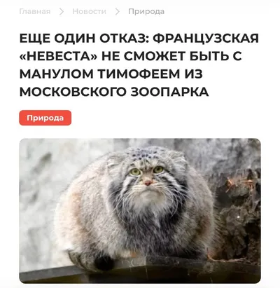 😢Драма дня: манул Тимофей из Московского зоопарка остался без французской невесты. У нее нашли китайский герпес. До этого от Тимофея отказалась самка из Польши. В итоге Тимофей ближайшее время буде