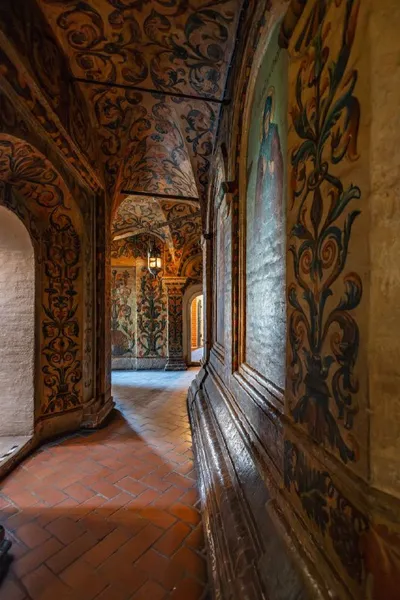 🖇Заглянем внутрь храма Василия Блаженного 🔵На фото - внутренние росписи галерей. В XVII веке на смену строгой «кирпичной» графике времен Ивана Грозного пришло буйство красок – «травное письмо». Ма