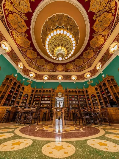 🖇Отреставрированный павильон Главтабак на ВДНХ 🔵Центральный элемент в обновленном интерьере павильона N35 — гигантская металлическая люстра с плафонами. Ее диаметр составляет более 3 метров, а высо