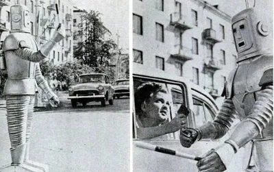 🤖 Когда СССР хотел заменить гаишников роботами? Снимок 1967 года из журнала «Моделист-Конструктор» запечатлел амбициозный советский эксперимент — робота-регулировщика, призванного заменить инспектор