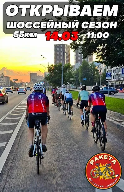 🚴♂️ ОТКРЫВАЕМ ШОССЕЙНЫЙ СЕЗОН!🚀 📆 14.03 (суббота) ⏱️ Сбор в 10:50 📌 БЛК Марьино 🚀 Старт в 11:00 🏁 Дистанция 55км 🛣 Асфальт 100% ⬆️ Скорость движения: 💪 Здоровье 25-30км/ч, начинаем раскаты