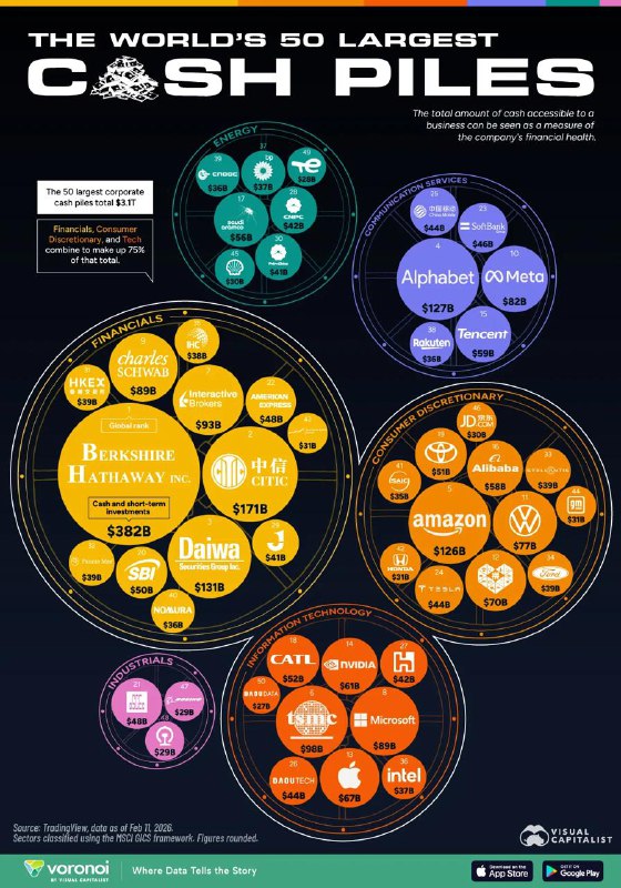 Если вы любите считать чужие деньги, то вот вам компании, которые накопили больше всех кэша. Для образности – если сложить миллиард стодолларовыми купюрами в одну стопку, получится башня выше Бурдж-Ха