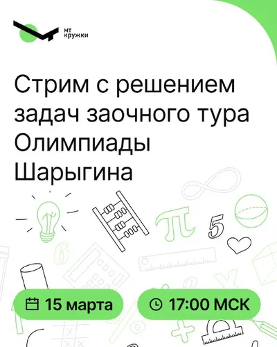 🧑💻 В это воскресенье в 17:00 преподаватель МТ Кружков «Профи» Фёдор Львович Бахарев в прямом эфире будет решать задачи заочного тура олимпиады по геометрии имени И.Ф. Шарыгина. Упор будет на геомет