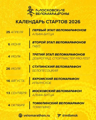 Веломарафонцы, на перекличку! Весеннее солнце с каждым днём всё сильнее плавит снег — совсем скоро стартует новый сезон Московских веломарафонов ☀️ 25 апреля. Альфа-Битца. Первый этап МВМ 2026. Для