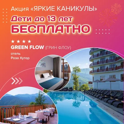 😍 Акция «ЯРКИЕ КАНИКУЛЫ» - дети до 13 лет БЕСПЛАТНО в отеле «Green Flow» (Грин Флоу) (Роза Хутор) 😁 Условия: дети на дополнительном месте до 13 лет (включительно) бесплатно Даты заезда: с 13.03.26