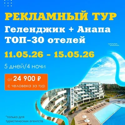 🤩 Уважаемые коллеги! 🤩 Мы рады пригласить вас в эксклюзивный рекламный тур - «Геленджик + Анапа, ТОП-30 отелей»: Ваш ключ к продажам 2026! 🤩 С 11 по 15 мая вас ждет захватывающее путешествие по