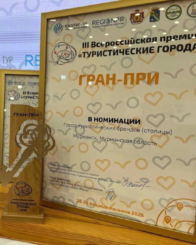 🏆 Мурманск признан лучшим городом туристических брендов на всероссийской премии «Туристические города» Столица русской Арктики удостоилась сразу нескольких наград: 🏆 Гран-при в номинации «Город ту
