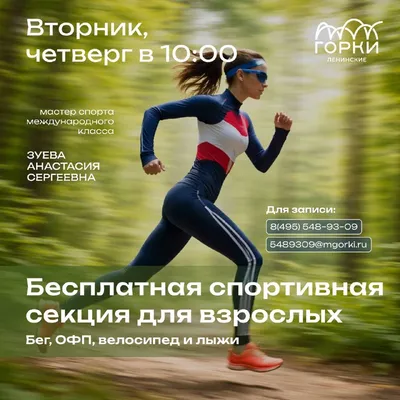 ⛷🚴♂️ Открыт набор во взрослую спортивную группу Начинаем занятия с 1 апреля, каждый вторник и четверг в 10:00. 🌿 Тренировки проходят на свежем воздухе и включают⬇️ • в тёплый сезон: беговые трен