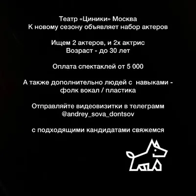 ИскусствоКастинги в проекты для поющих и танцующих актеров, иногда цирковых. Жаркие баталии от профи индустрии в комментах) Подпишись, чтобы не пропустить. 🌟 Предложения о публикации сюда: @oleynikjul @lazarevichksu Авторы — Юлия Олейник и Ксения Лазаревич.