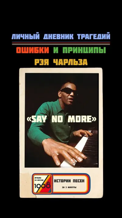 Рэй Чарльз — «Say No More»: гимн непокаявшегося грешника Песня «Say No More» — манифест человека, который признавал грехи, не теряя достоинства, отказавшись чувствовать бессмысленную вину. 📱 Ти