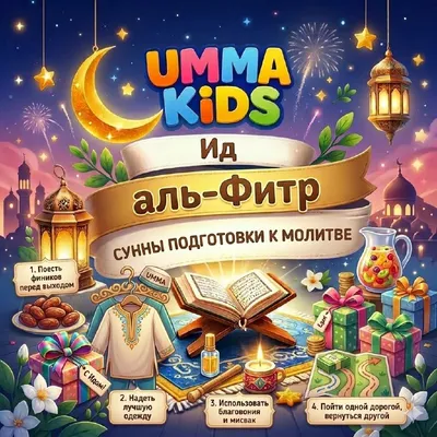 ✨ Ура! Ид аль-Фитр! 🎉 Ассаляму алейкум, дорогие ребята! Поздравляем вас с самым радостным праздником — Ид аль-Фитр! Рамадан закончился, и мы все большие молодцы, что так хорошо соблюдали пост или у