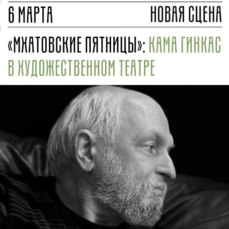 6 марта в 19:00 на Новой сцене в рамках цикла «Мхатовские пятницы» состоится встреча с мэтром отечественной режиссуры Камой Гинкасом. 🌀 Темой вечера, который традиционно проведёт Вадим Верник, буду