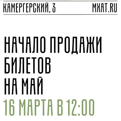Афиша на май уже на сайте! 🌀 Продажа билетов на май в кассах МХТ (Камергерский переулок, 3) и на сайте театра начнётся в понедельник, 16 марта, в 12:00. Формирование очереди в кассу с использовани