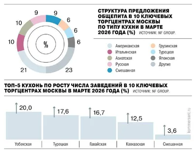 🍜 В московских ТЦ сократилось количество ресторанов японской, русской и грузинской кухни, но увеличилось число заведений узбекской, турецкой и гавайской кухни. Рестораторы открывают более дешёвые фо