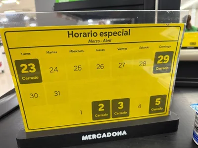А вот почему Mercadona будет закрыта 23 марта (см. выше), кто скажет?.. Нас самом деле, мне бы надо было уточнить, о какой Mercadona речь. Объявление было сфотографировано в супермаркете, расположенн