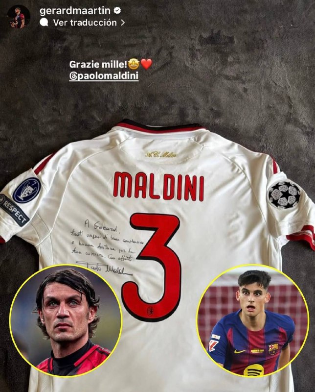 🇮🇹Красивый подгон для игрока «Барсы» от Мальдини Легенда «Милана» Паоло Мальдини подарил Жерару Мартину подписанную футболку с одного из матчей ко дню рождения игрока. Испанец говорил, что Мальдин