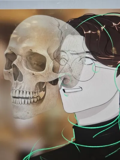 Делаю сейчас перерисовку старой работы с пояснениями (для бусти), хотела объяснить на черепе. Но щас смотрю и выглядит так будто из него уже проклятый дух вылетает