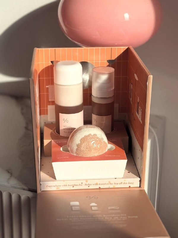 В золотояблочном царстве был обнаружен набор «Kombucha Tea Relaxing от Dr.Ceuracle» 🤌🏻 Легендарная тонер-эссенция, новенький мист и бомбочка для ванн упакованы в мини-ванную комнату, где средства