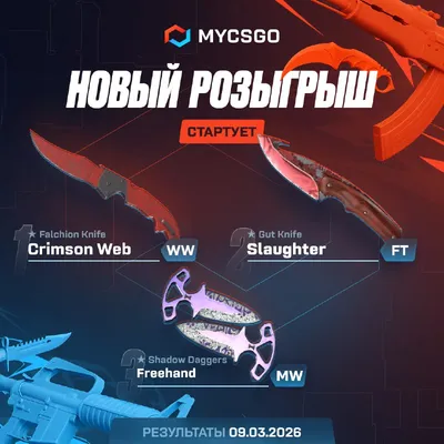 🩷🕐🕑🕒🕔🕕🕘🕛🕦 3 ножа в новом розыгрыше для тебя: ★ Falchion Knife Crimson Web WW ★ Gut Knife Slaughter FT ★ Shadow Daggers Freehand MW Для участия: — Подпишись на @my_csgoo, @mycsgo_feedback