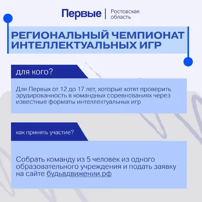 ОбразованиеОфициальная страница Движения Первых в Ростовской области ВК: https://vk.com/mypervie61 Сайт: будьвдвижении.рф Будь в движении!
