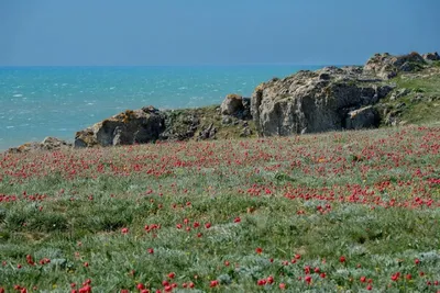 Дикие тюльпаны. Мыс Опук расположен на Керченском полуострове — в юго‑восточной части Крыма. В 1998 году эта территория и прилегающая акватория Чёрного моря получили статус заповедника: здесь сошлись
