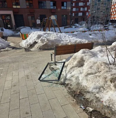 💬От подписчика: Мытищи, улица разведчика Абеля, 9к1, новый дом, застройщик Смайнекс. Прямо над входной группой валяется вывалившийся из окна стеклопакет. Застройщик жильцам давать пояснение отказа