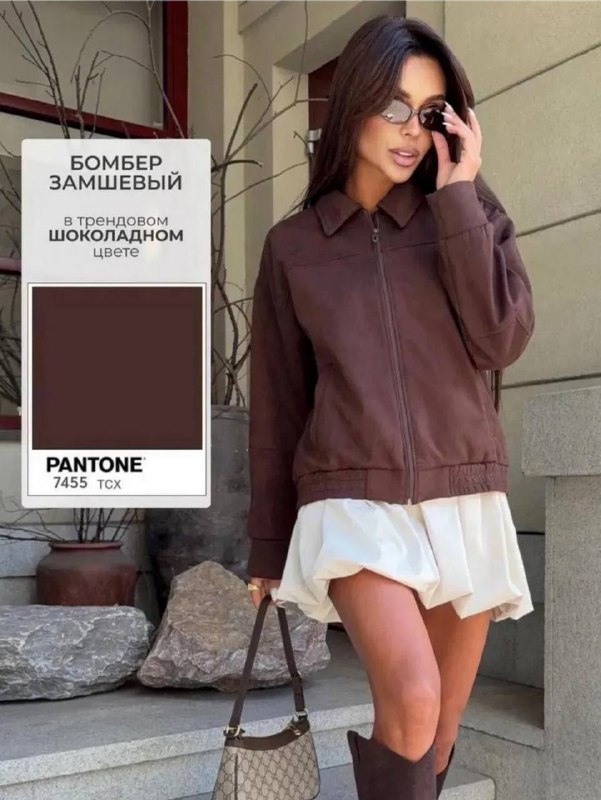 Трендовый бомбер в шоколадном цвете 🤎 🍁 выполнена из мягкой экозамши 🍁 свободный крой оверсайз 📌 Ссылка на WB ~ 5849₽ 💬 Telegram | 💬 MAX